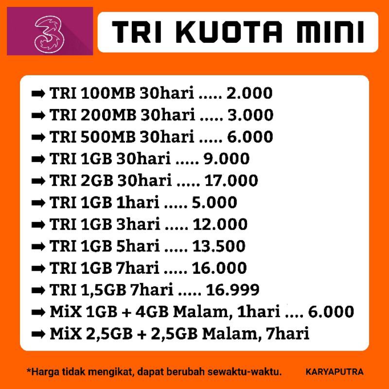 • v 1,5gb 1bln all jringan @15rb. By admin wednesday, may 26, 2021 tembak paket tri cara tembak paket internet murah kartu tri dengan termux : Untuk mengontro… read more suntik kuota tri : Pelajari juga cara cek kuota tri via website, sms serta aplikasi bima tri. Semua produk yang ada di rajakuota.com adalah harga yang kompetitif dan lengkap.